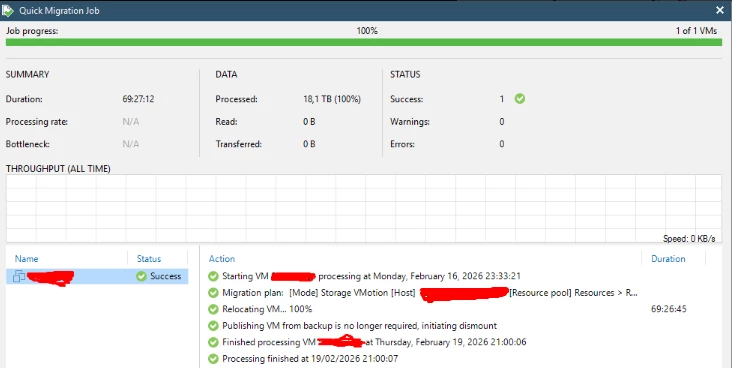 Using Instant Recovery through Veeam Backup & Replication, those systems were up and running in minutes, booting directly from backup while the full migration to production storage continued in the background.