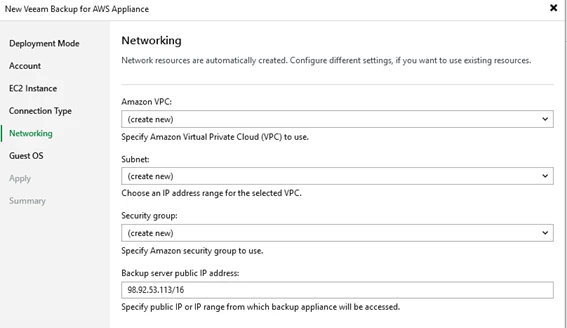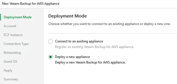 After installing Veeam, I started the wizard to install the AWS Appliance: