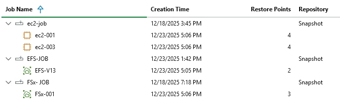 After the services started, I can already see the instance configured via Veeam in the AWS console: