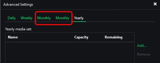 Was working today doing some tape stuff and when testing my PowerShell script to create GFS pools noticed that when you go into the Advanced settings for the Daily, Weekly, etc. section of the pool properties you see two monthly and no quarterly.