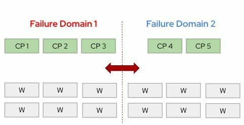 To increase resiliency during data-center-level failures, OpenShift can leverage 4-node or 5-node control-plane deployments, such as: