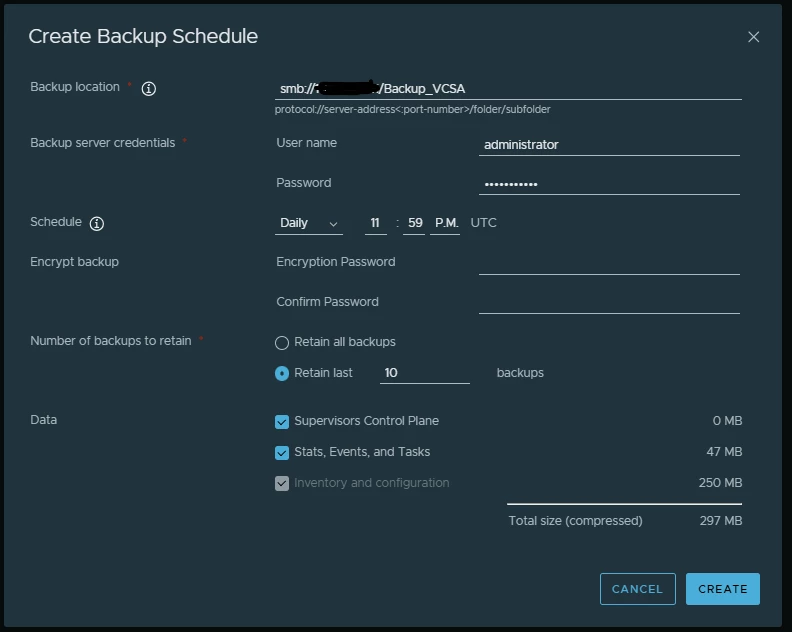Check out this link for details:https://techdocs.broadcom.com/us/en/vmware-cis/vsphere/vsphere/7-0/vcenter-server-installation-and-setup-7-0/file-based-backup-and-restore-of-a-vcenter-server-environment.html