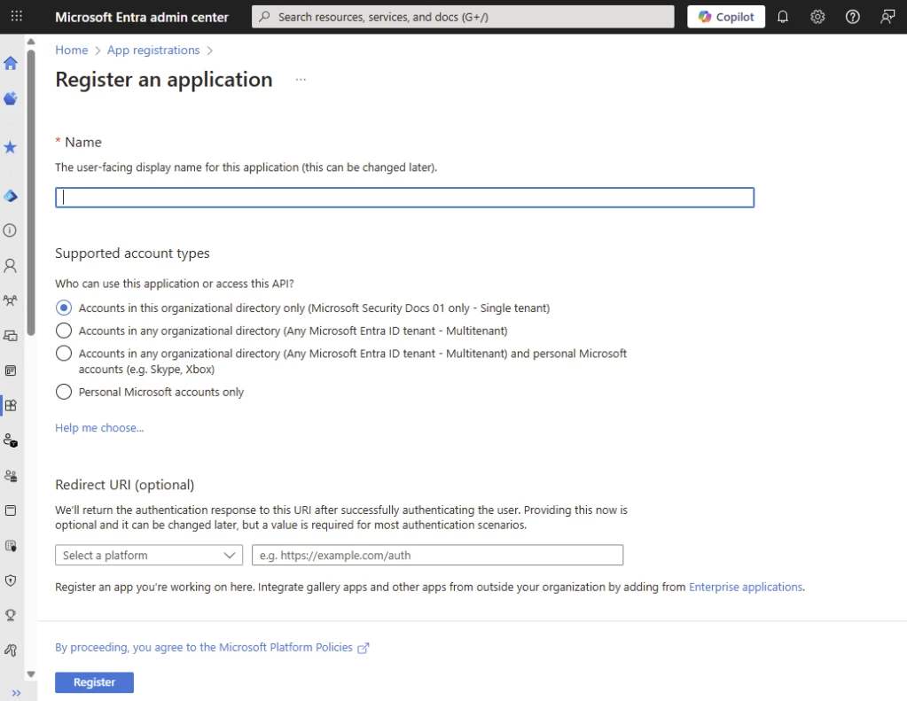 Details: https://learn.microsoft.com/en-us/entra/identity-platform/quickstart-register-app
