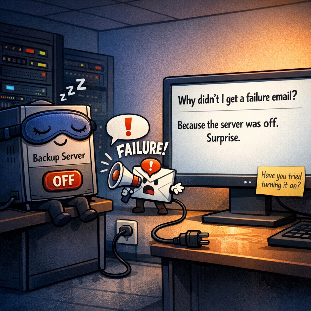 Backups without notifications are like monitoring without alerting: you can live with it—until the day you can’t.