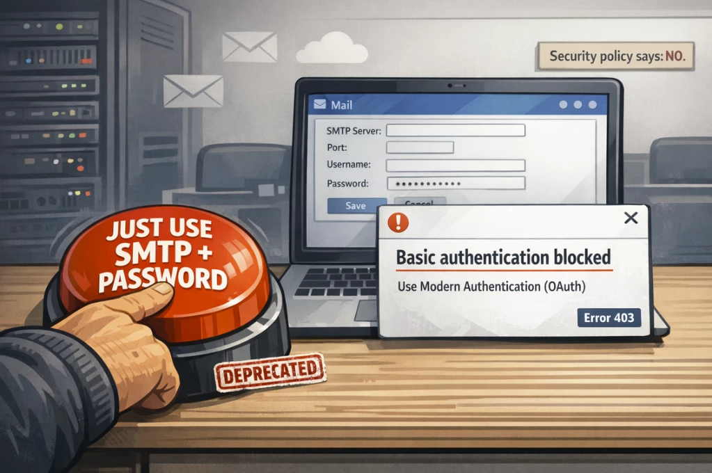 For several years, that was even the only way—and of course it can still work today. This classic approach is called SMTP server (basic authentication).