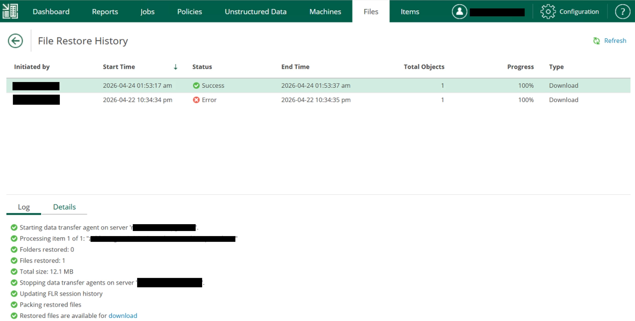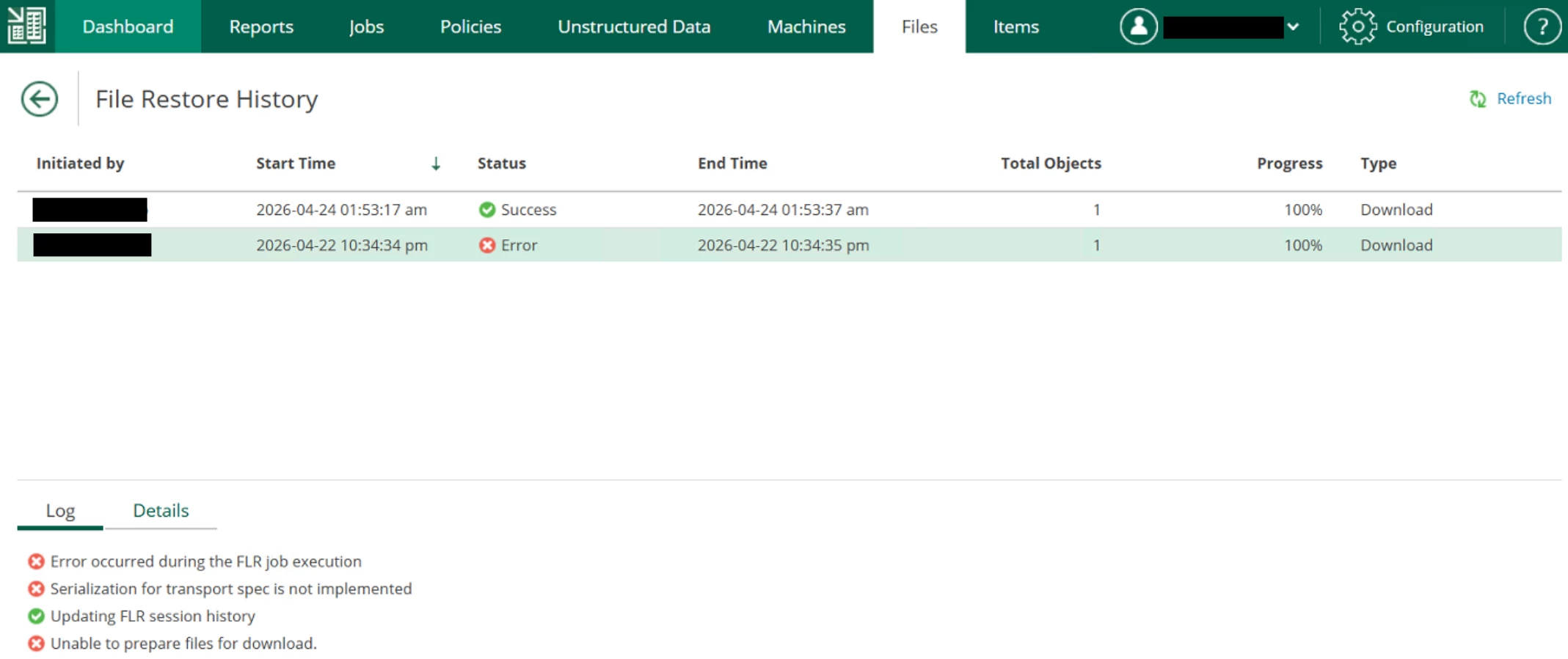 Recently however, all file restores and downloads started to fail for them, as well as files restores performed by me directly on the Enterprise Manager server. Those restore failed with the following error(s):