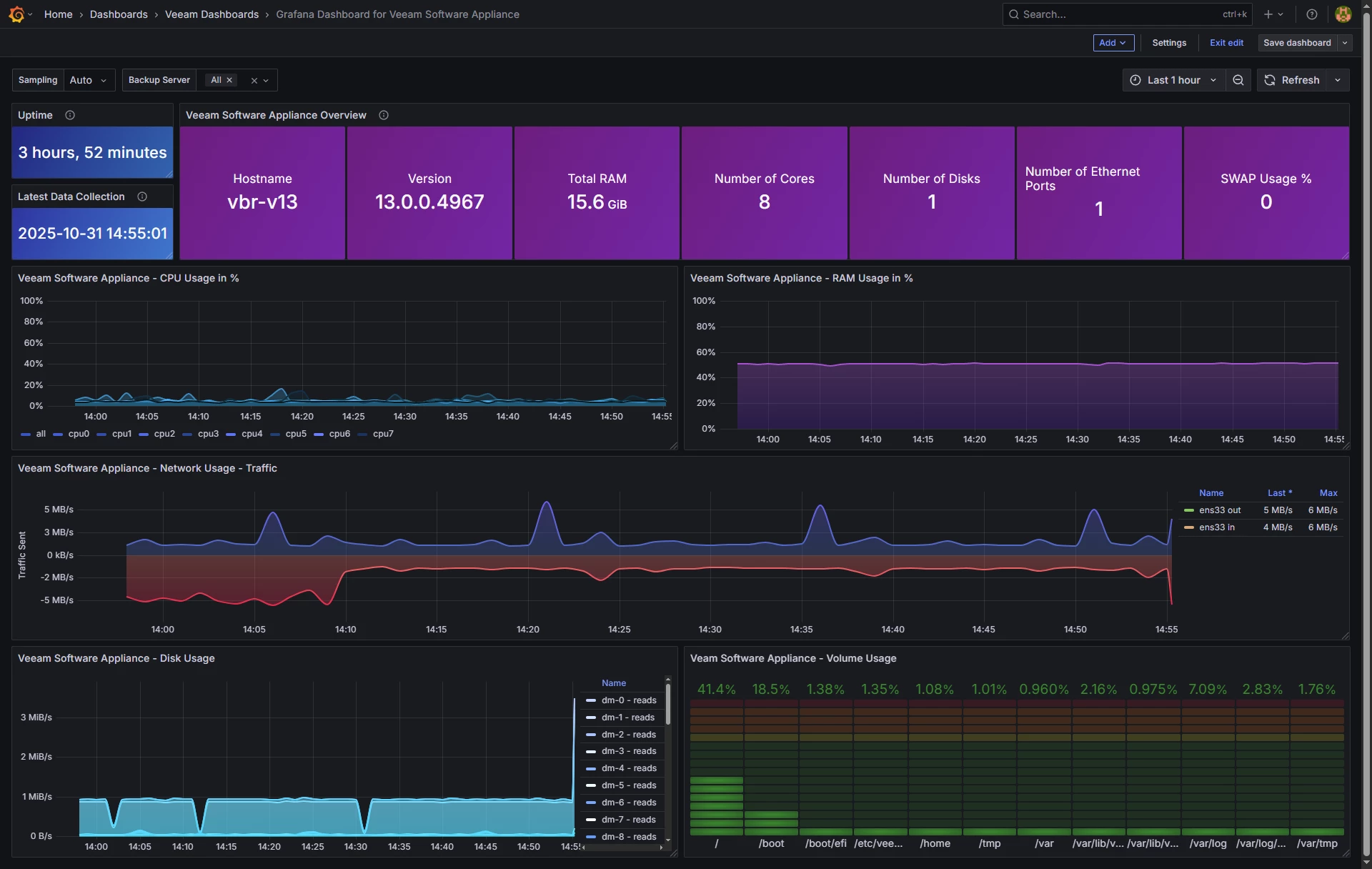 - If the Grafana is not loading, use the dashboard from Github - https://github.com/jorgedlcruz/veeam-appliance-monitoring/tree/main/node_exporter_bash