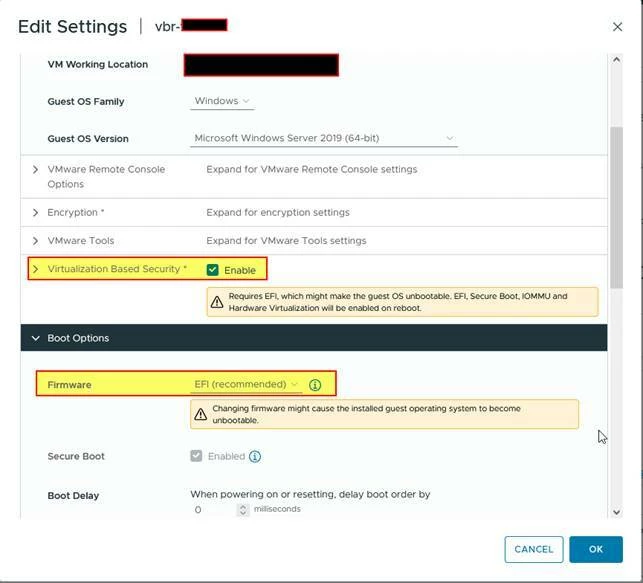 Now change the firmware to UEFI (and enable Secure Boot) in the VMware settings.