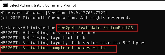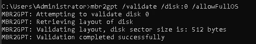 If the response is ‘Validation completed successfully’, proceed with the conversion: