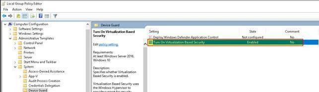 This setting lets users turn on Credential Guard with virtualization-based security to help protect credentials.