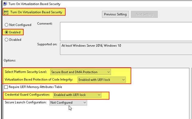 The "Enabled without lock" option allows Credential Guard to be disabled remotely by using Group Policy. The devices that use this setting must be running at least Windows 10 (Version 1511).
