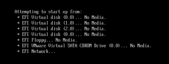When you changed the setting to UEFI in the VMware options, the virtual machine stopped finding the boot sector on the disk, because BIOS disks use the MBR scheme, while UEFI looks for the GPT scheme.