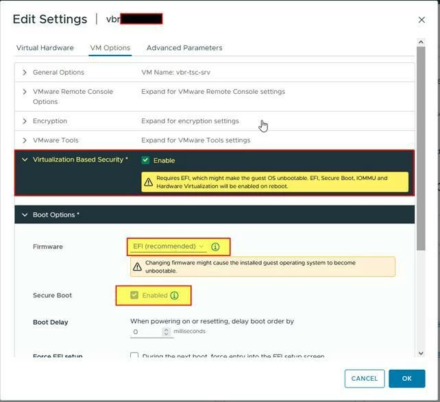 If you need to restart Veeam urgently, shut down the VM and reset the firmware to Legacy (BIOS).