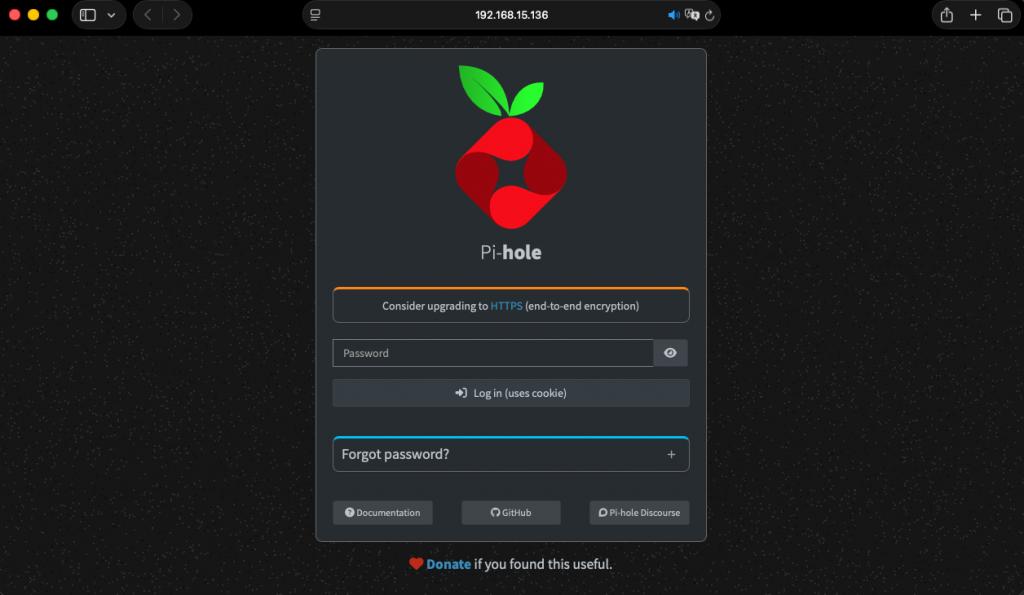 Now let´s open a browser and login into the Pi-Hole console: