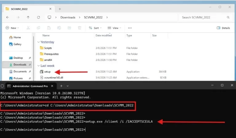To mitigate against this issue, have to bypass the GUI and run setup in client mode from the command line, which does not require the machine to be domain‑joined. Alternatively, you can also use the Runas command or use the shift + rigt-click to get the run as a different user in order to install the VMM Console.