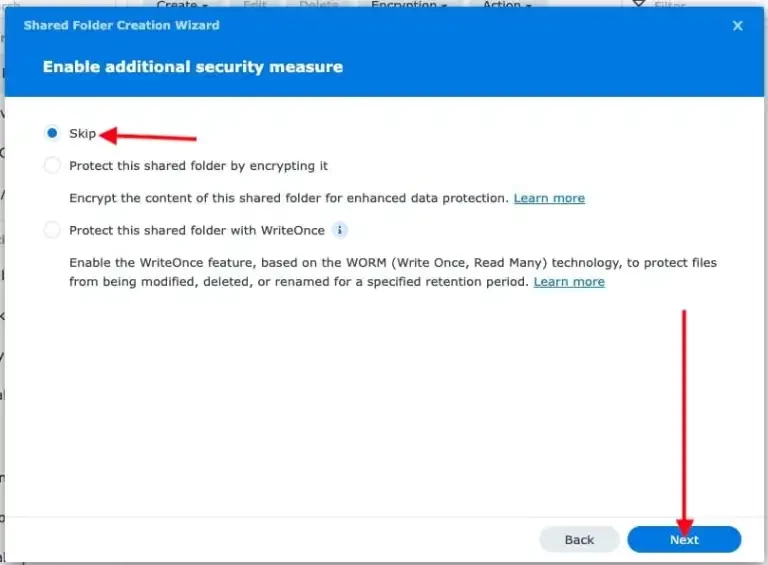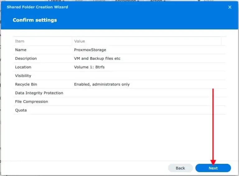 I will skip the “Enable additional security measure” here here. This is because, the Write Once” (WORM) is designed for archival storage where data cannot be modified, but it is unsuitable for Proxmox because the platform requires dynamic read/write/delete access for VM disks, backups, and ISOs.