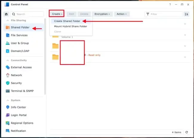 Next, create a share folder from the Control Panel.