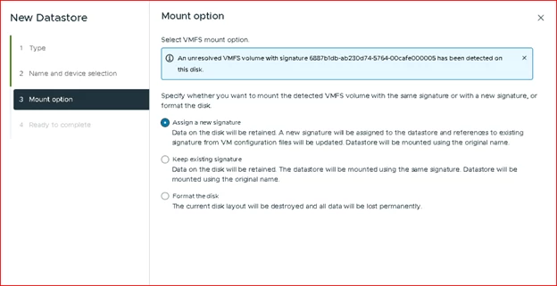 Assigning a New VMFS Signature