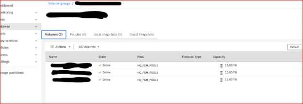 Because my hosts are connected over Fibre Channel, I mapped the cloned volumes back to the host cluster just like any other SAN volume. They showed up as 12 TB LUNs, even though they were barely using any space. After rescanning the storage, I could see the new volumes in vSphere.
