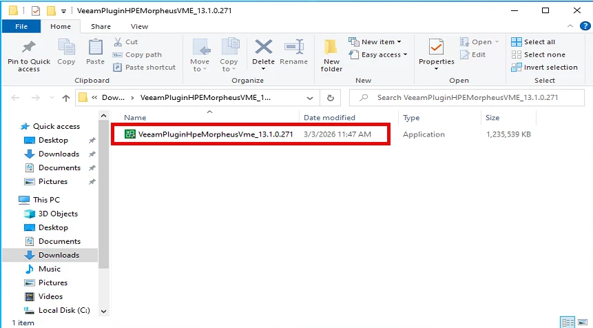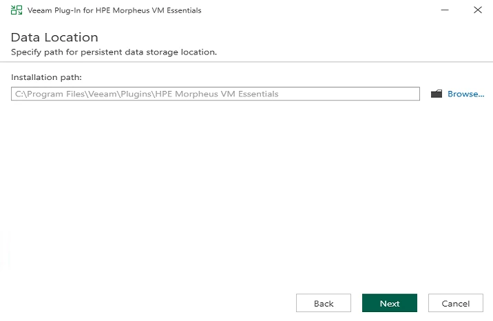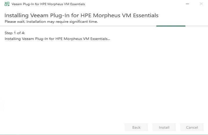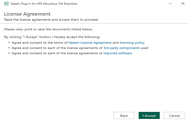 Launch the VeeamPluginHpeMorpheusVme_13.1.0.271.exe file on the backup server. The setup wizard will guide you through: