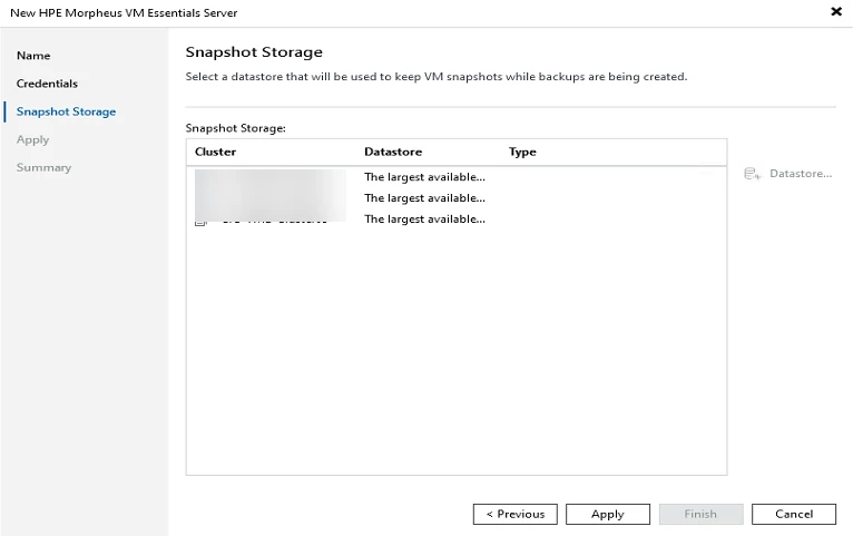 Select a Datastore to keep the VM snapshots ==> Click APPLY