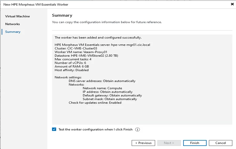 Once completed ==> Click the checkbox to test the worker configuration ==> Click FINISH