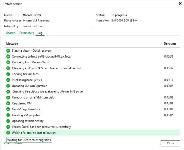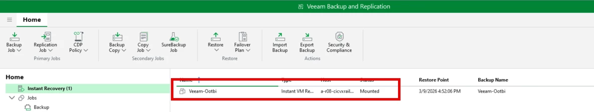 At this point its mounted as an instant Recovery and waiting for the migration. No further testing will be done here.