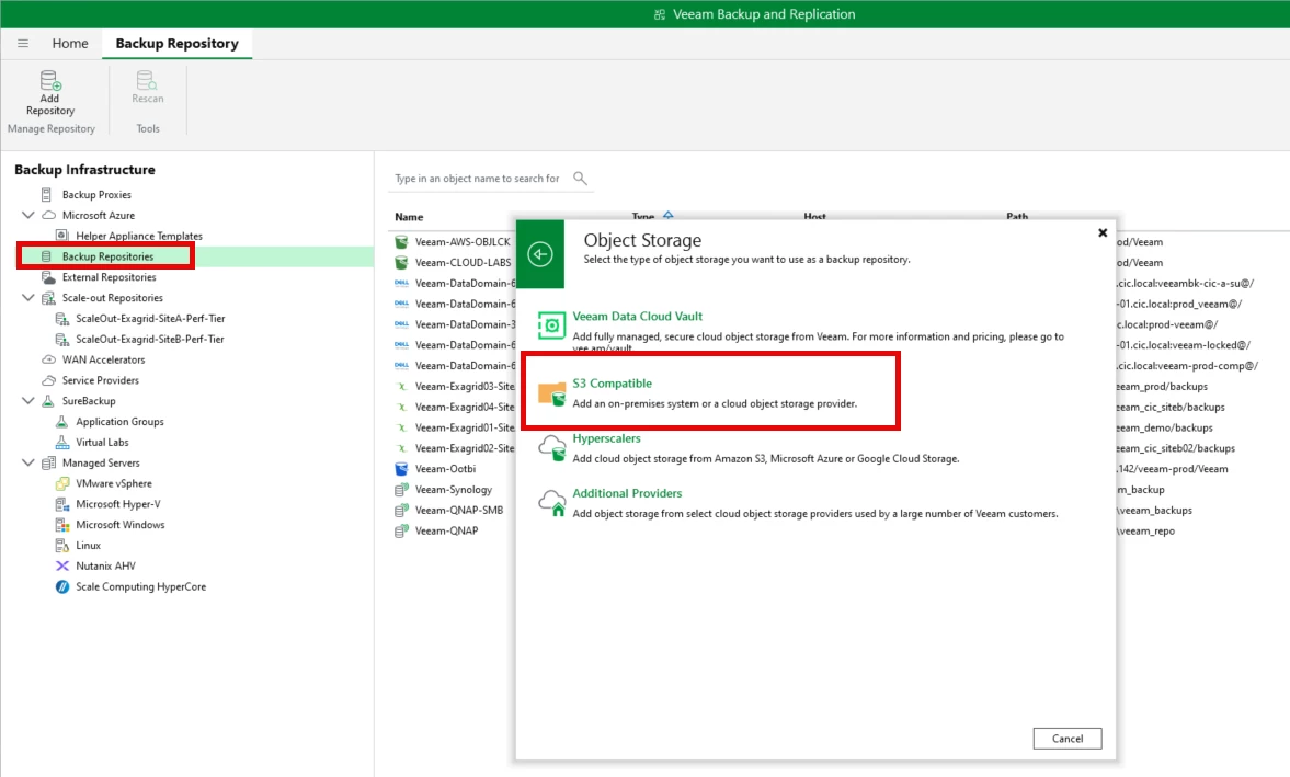 Step 2: Adding the Object Storage Repository in Veeam