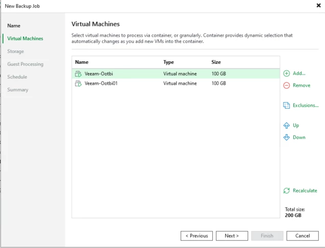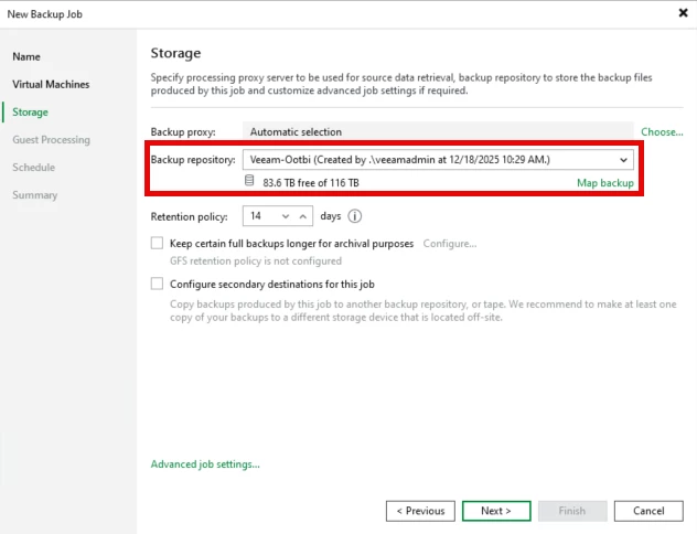 Here, we'll point the backups to the Ootbi repository that was created earlier
