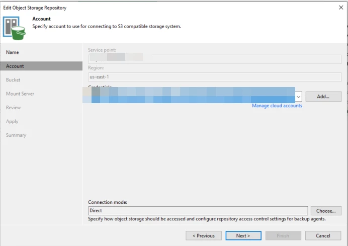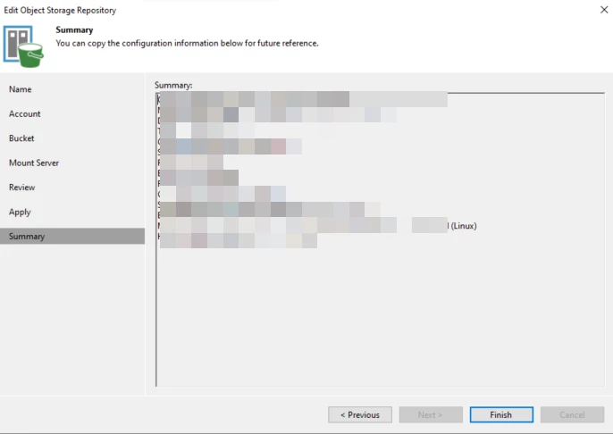 Next, the object storage repository was added to Veeam Backup & Replication.