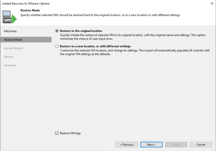 Right-click the client ==> Instant Recovery ==> VMware vSphere