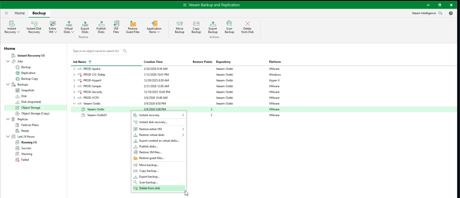 Here is the final test. We're going to test deleting the backup from Veeam and show how it's protected and cannot be deleted.