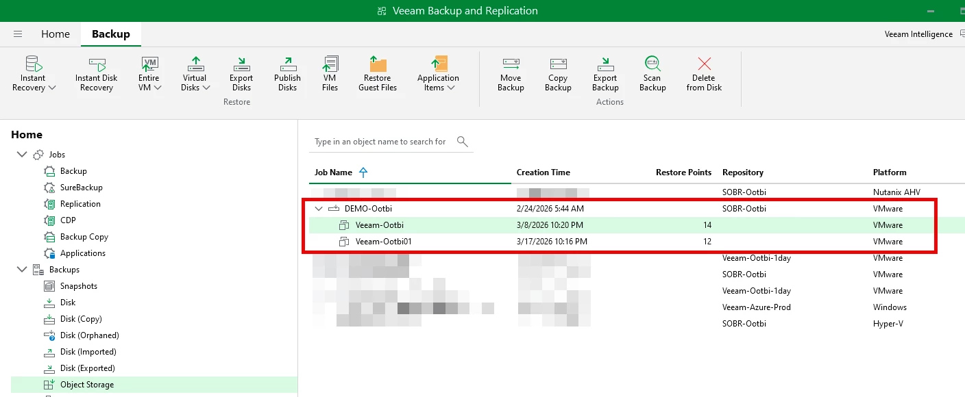I'm going to select a backup from the Object First repo "SOBR-Ootbi", expand the backup, select the backup "Veeam-Ootbi"