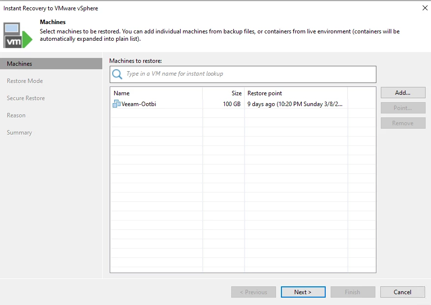 In this article, I will explain Instant Recovery with Veeam, its functionality, and its significance. I'll run through a quick demo (screenshots) of the Instant Recovery process with Veeam