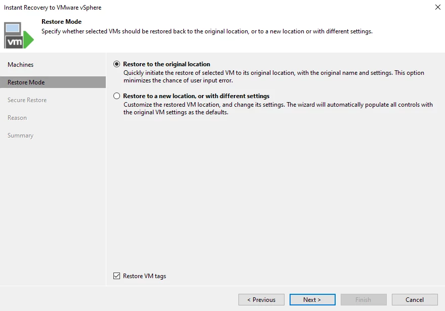 You don’t need the same infrastructure to restore—Instant Recovery is flexible across environments.