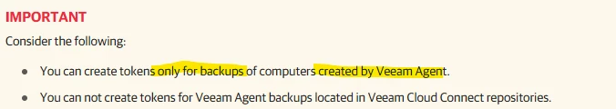 Recovery tokens are available for agent and plugin backups. They allow for easy and secure access to backups within repositories from a remote system, without the need to allow access to the full repository via credentials.