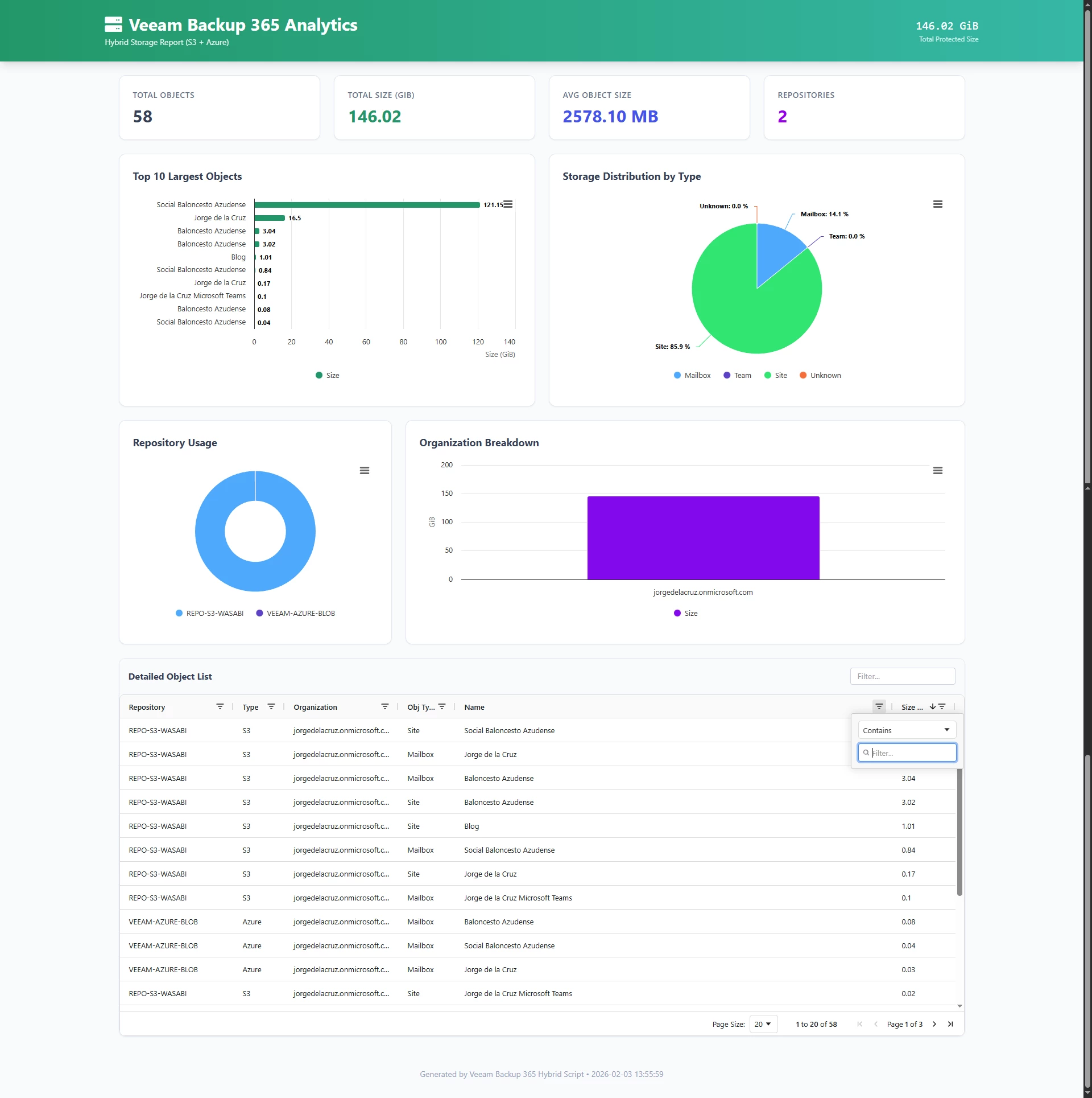 The Veeam Backup for Microsoft 365 console gives you some statistics, but when you're dealing with multiple repositories, multiple organizations, and you want a per-object breakdown, things get complicated fast.