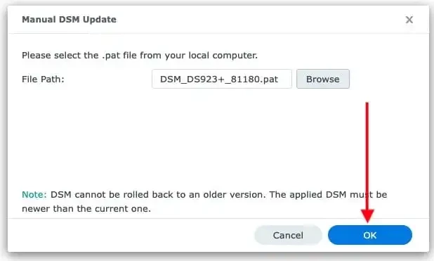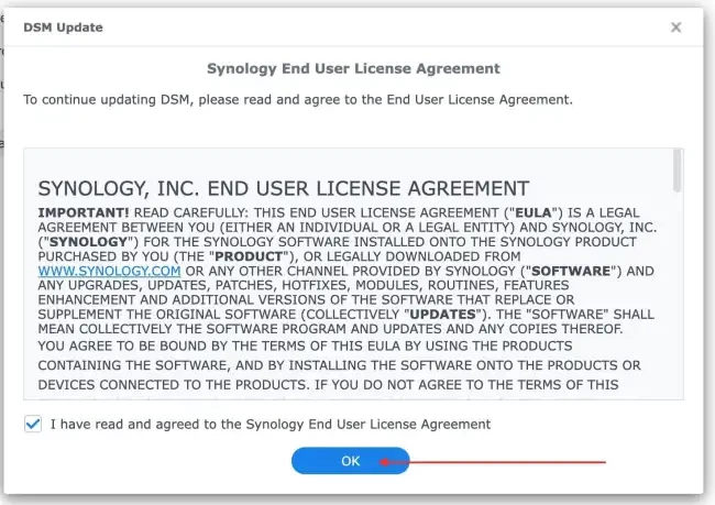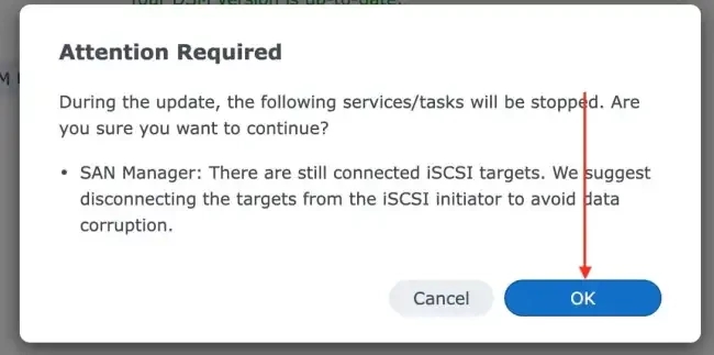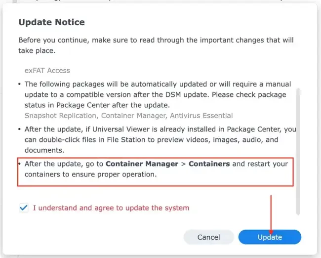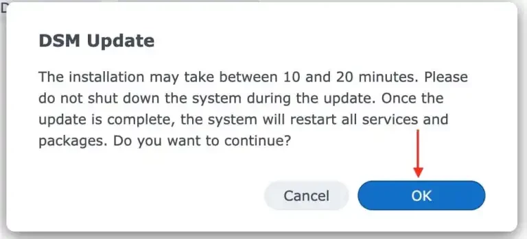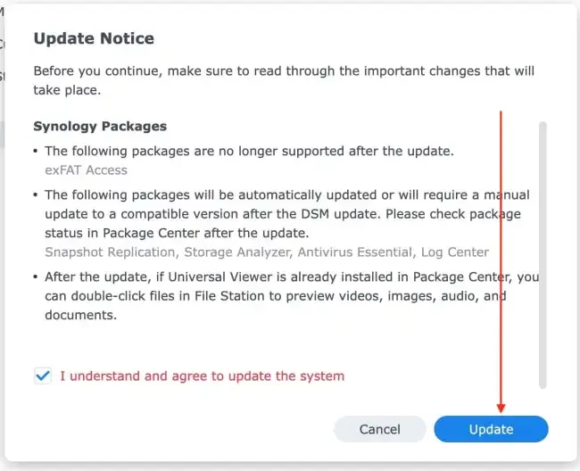 From another Synology NAS. As you can see, the update notice differs based on installed packages. Click on update to proceed.