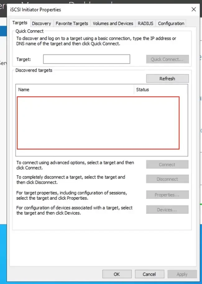 As you can see, I have proceeded to my Windows Server and have discounted the Targets. Do not forget to reconnect when the update is complete.