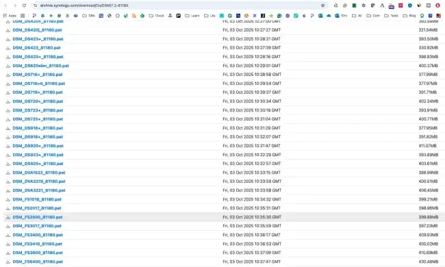 To download DSM 7.3-81180, kindly use the following Archive (link). Then from the official Synology Archive, download for your NAS model. In my case, it is DS923+ and this might be different for you.