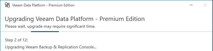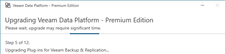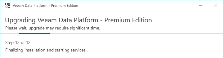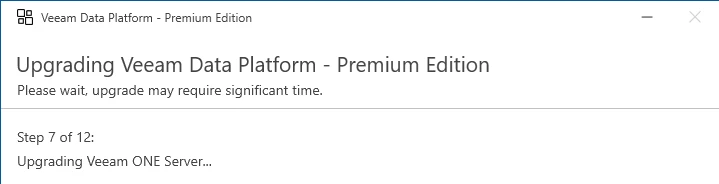 ~5 minutes later, the embedded Veeam ONE Server is now in the upgrade phase. |