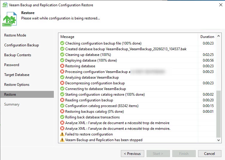 During a Veeam Backup & Replication configuration restore on a new server, I encountered an error. “XML Parsing: document parsing required too much memory”