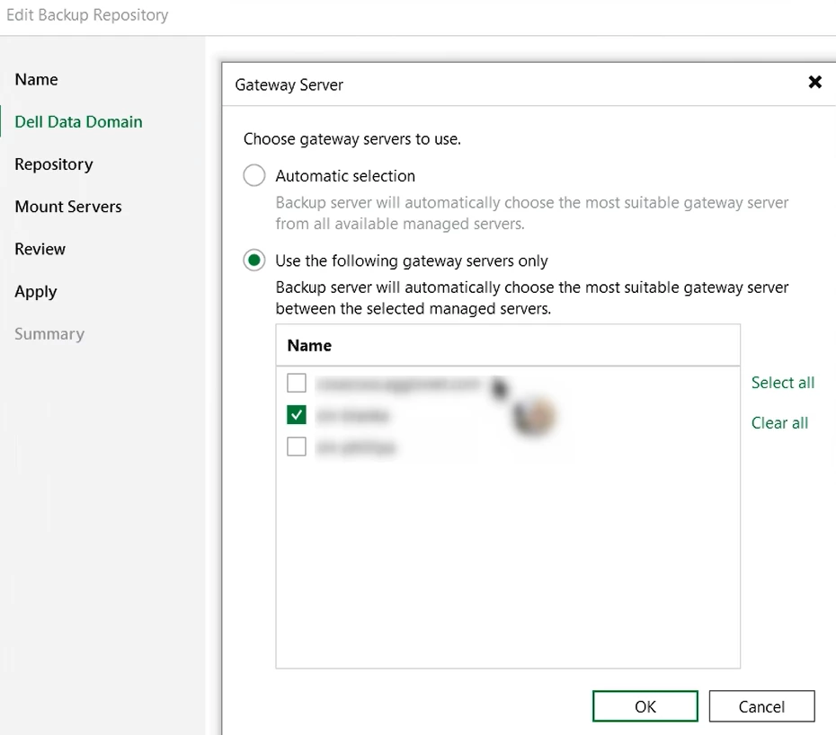 Once the server was added, it's visible in the list as a possible Gateway Server.