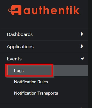 And on Authentik side we do have on the admin page “Events → Logs”, here you find some logs about authentication errors.