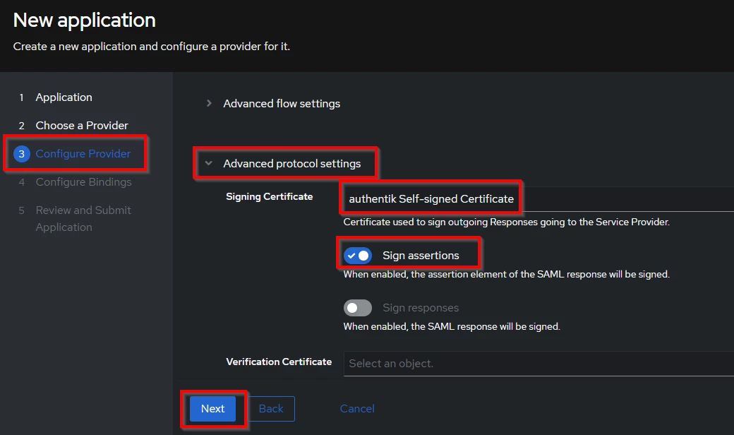 Basically the settings of Authentik are done. Just click "next, next, submit" and your application and provider are created.