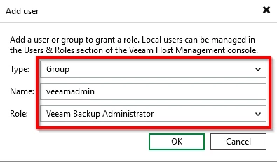 Again the comment that it might not be the best practice to choose here a "Veeam Backup Administrator", but this is just for showcasing the functionality.