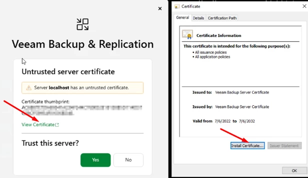 With VBR v13, communication between the VBR console and the VBR server seems to rely more heavily on certificate‑based security than in previous versions.