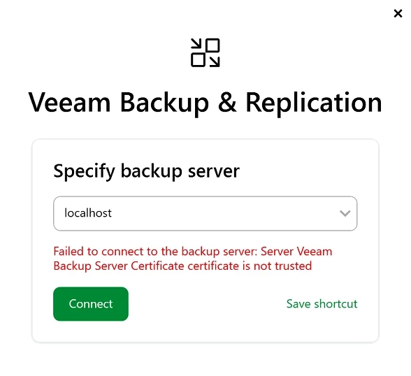 - The Veeam console no longer trusts the server certificate