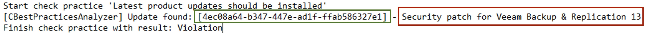The fix requires retrieving an Update ID from the Job.BestPracticeAnalyzer.log file in the following directory on the VBR Server: C:\ProgramData\Veeam\Backup\<log-file>