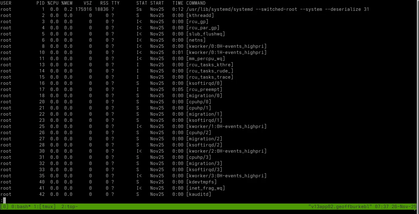 So what is tmux: tmux is a terminal multiplexer that lets you run multiple terminal sessions inside a single terminal window. You can split your screen into panes, create multiple windows, and detach/reattach sessions so your programs keep running even when you disconnect. It's especially useful for managing multiple command-line tasks at once or for remote server work where you want sessions to persist after logging out.